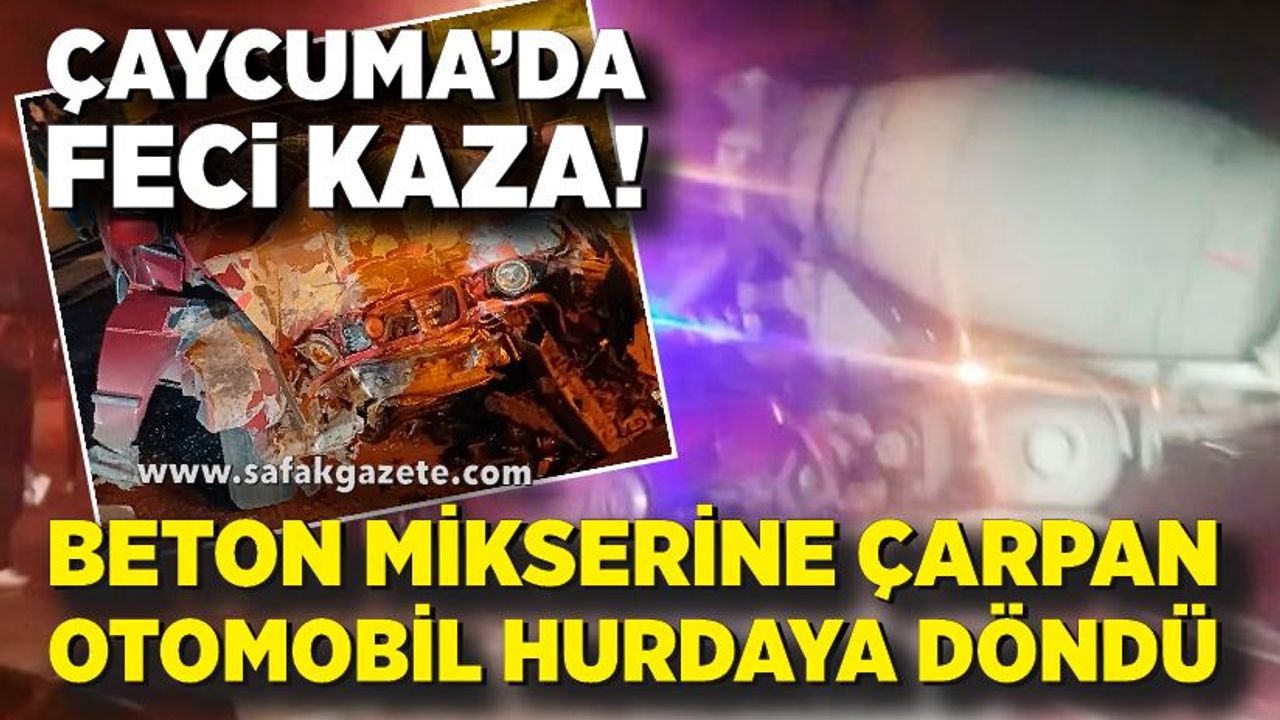 Zonguldak’ın Çaycuma ilçesinde meydana gelen trafik kazasında büyük bir facia kıl payı atlatıldı. Çaycuma–Perşembe kara yolu Ellezi çıkışında, akşam saatlerinde yaşanan olayda otomobil, beton yüklü mikserin şantiye alanına giriş yaptığı sırada aracın arka kısmına çarptı.