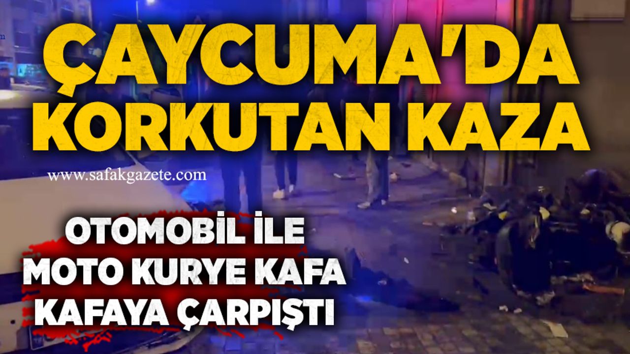 Çaycuma ilçesine bağlı Pehlivanlar Mahallesi’nde gece saatlerinde meydana gelen trafik kazasında otomobil ile moto kurye kafa kafaya çarpıştı. Kazada maddi hasar oluşurken, moto kurye yaralandı.
