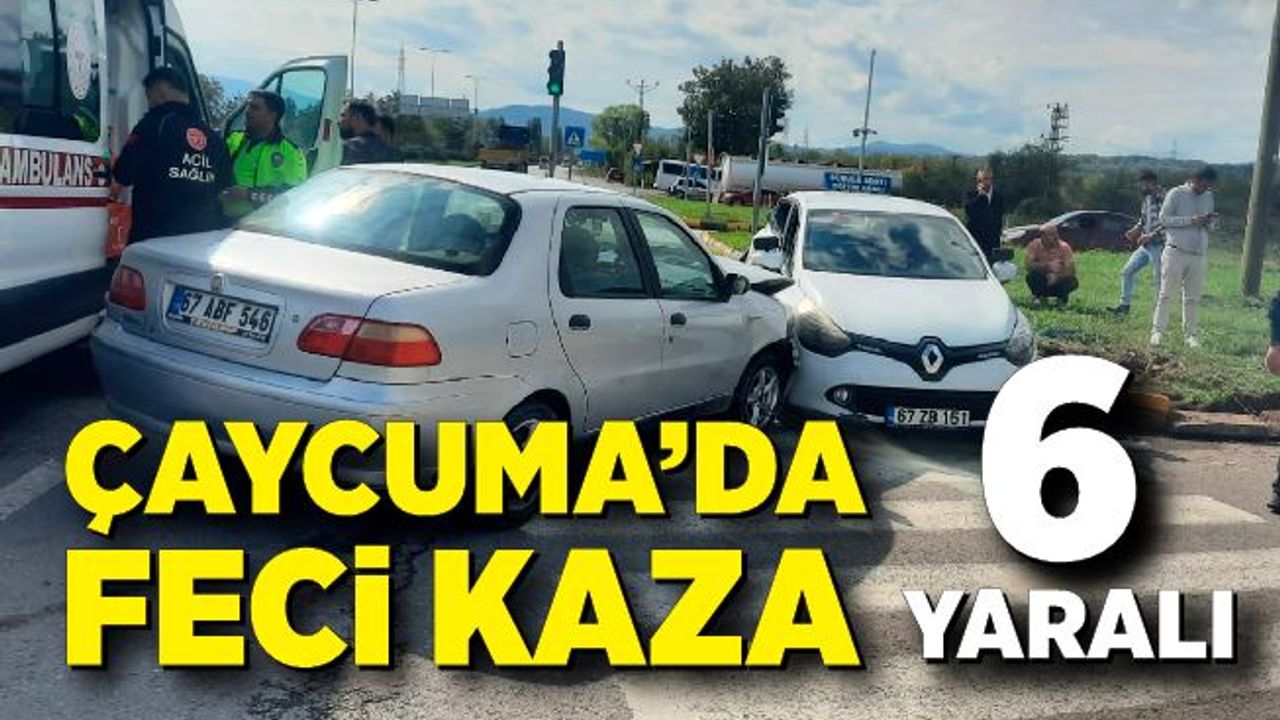 Zonguldak Çaycuma ilçesinde seyir halindeki iki otomobil çarpıştı kazada araç içlerinde bulunan 6 kişi yaralandı. Edinilen bilgiye göre kaza öğle saatlerinde Zonguldak Çaycuma ilçesi Perşembe kavşağında meydana geldi. 67 ABF 546 idaresindeki otomobil sürücüsü 67 ZB 151 otomobil ile çarpıştı. Kazada araç içinde bulunan 6 kişiyi hafif şekilde yaralandı. Kaza sonrası olay yerine sağlık ve polis ekipleri sevk edildi. Sağlık ekipleri yaralılara ilk müdahaleyi yaparken polis ekipleri kaza ile ilgili tutanak tuttu.