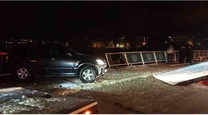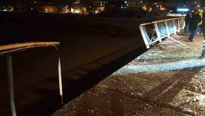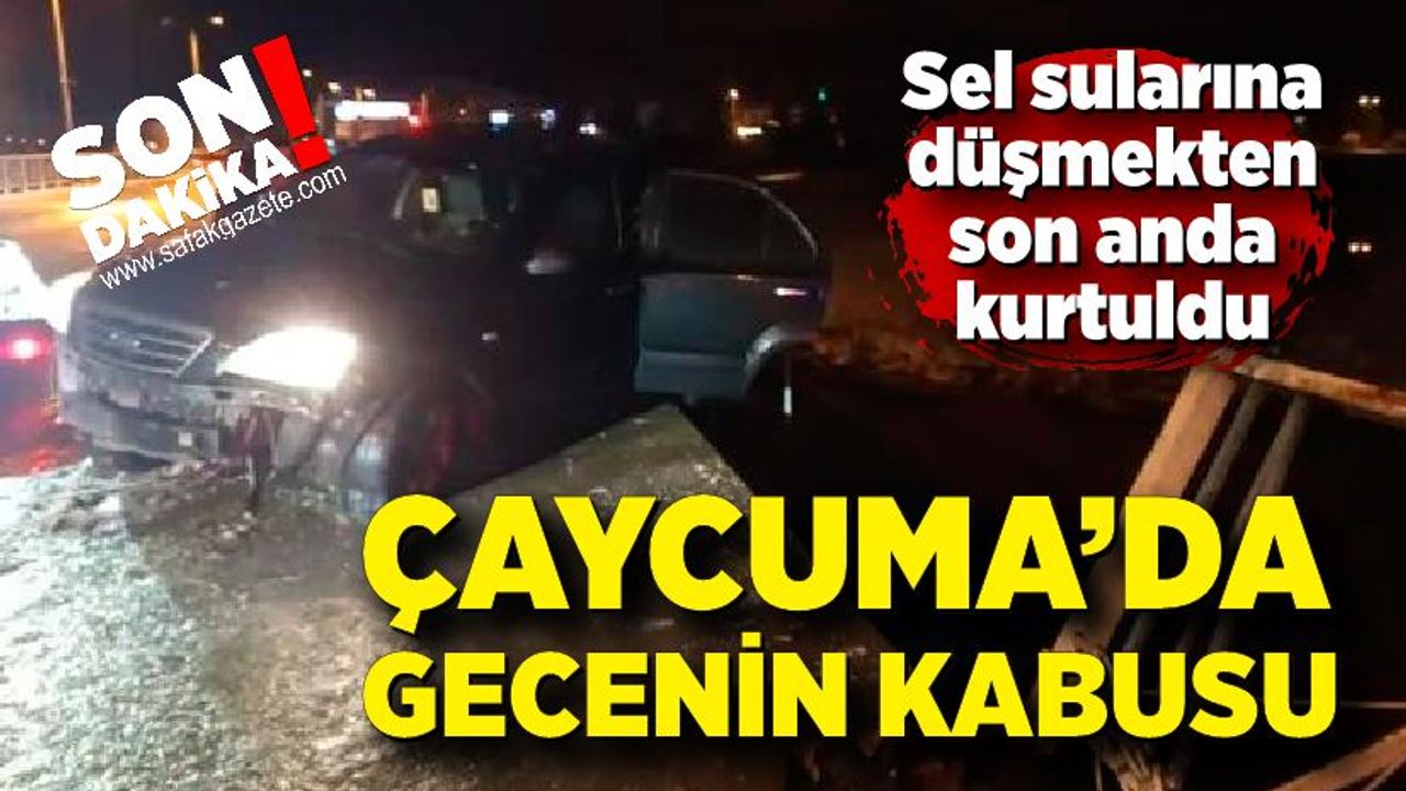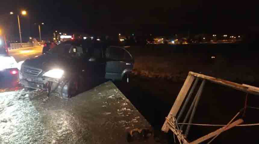 Kontrolden çıkan araç, köprü korkuluklarını kırarak sel sularına düşmekten son anda kurtuldu. Köprüde askıda kalan otomobilde bulunan sürücü ile birlikte 3 yolcu, kazayı mucize eseri yara almadan atlattı.