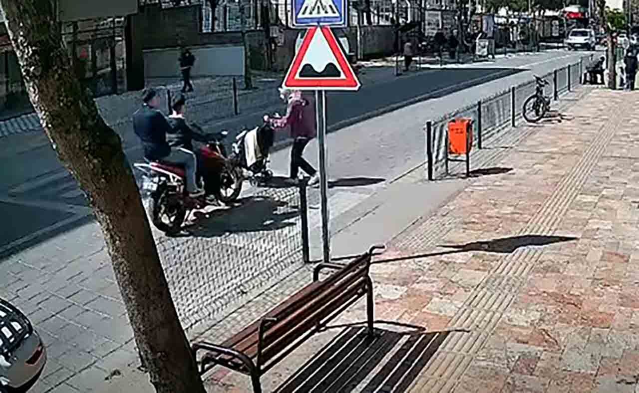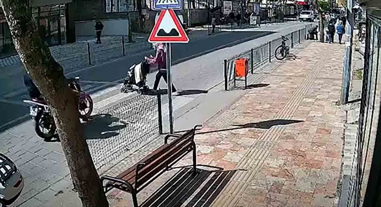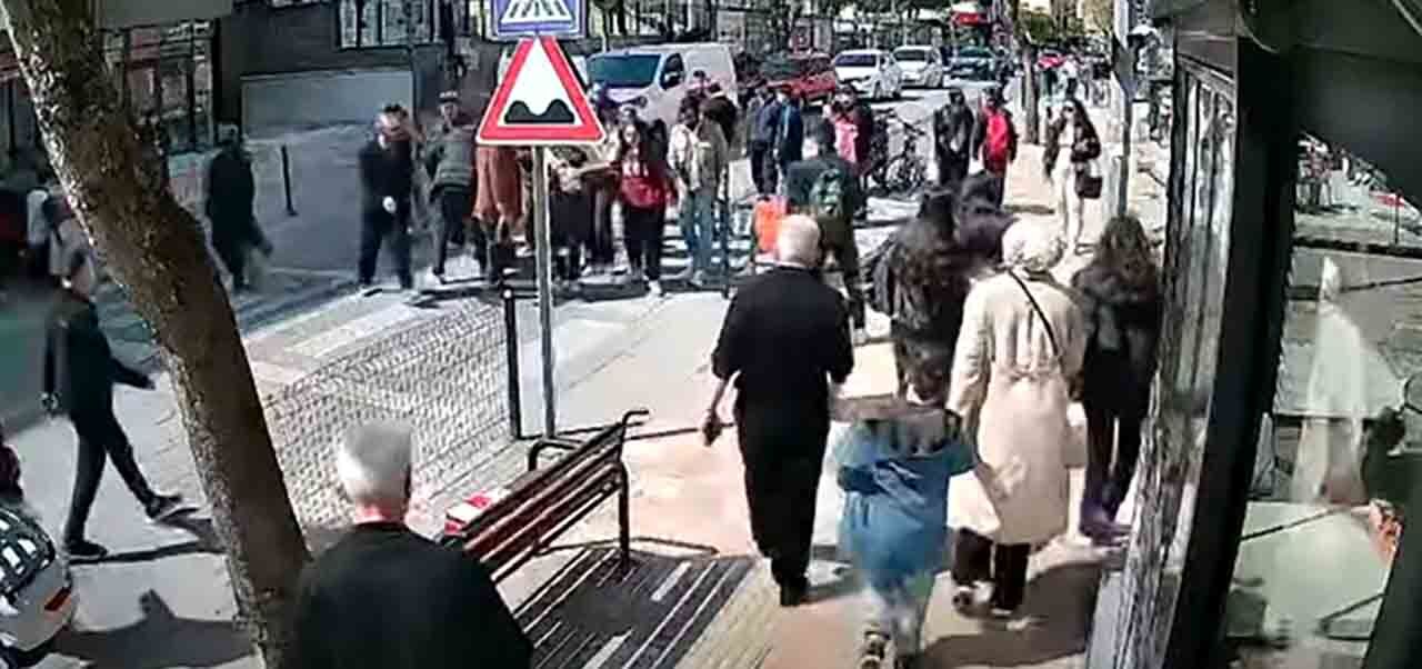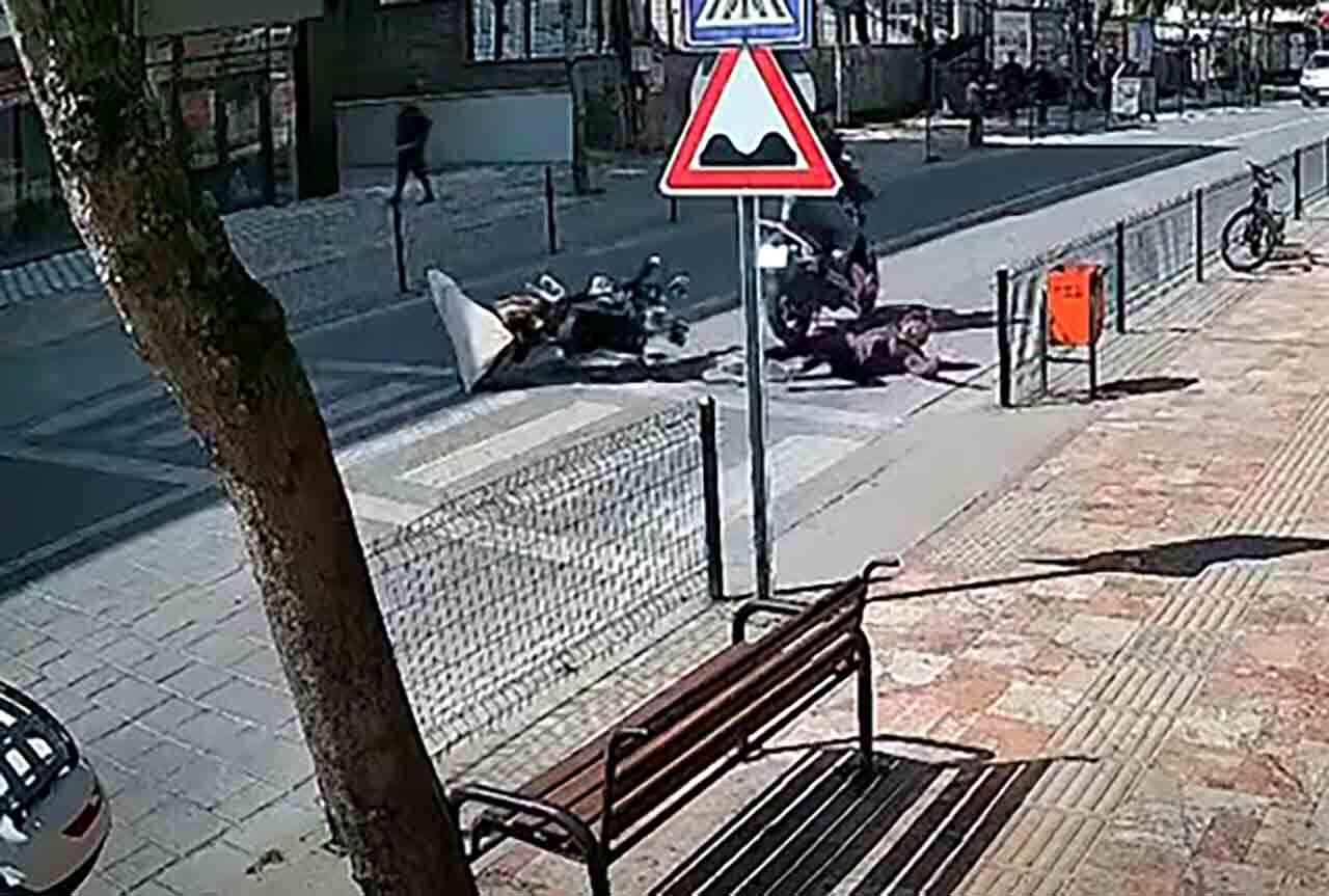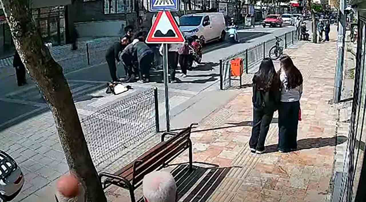 Kazanın yaşandığı anlar, çevrede bulunan bir iş yerinin güvenlik kamerasına saniye saniye yansıdı. Görüntülerde motosikletin hızla gelerek yayalara çarptığı görüldü.