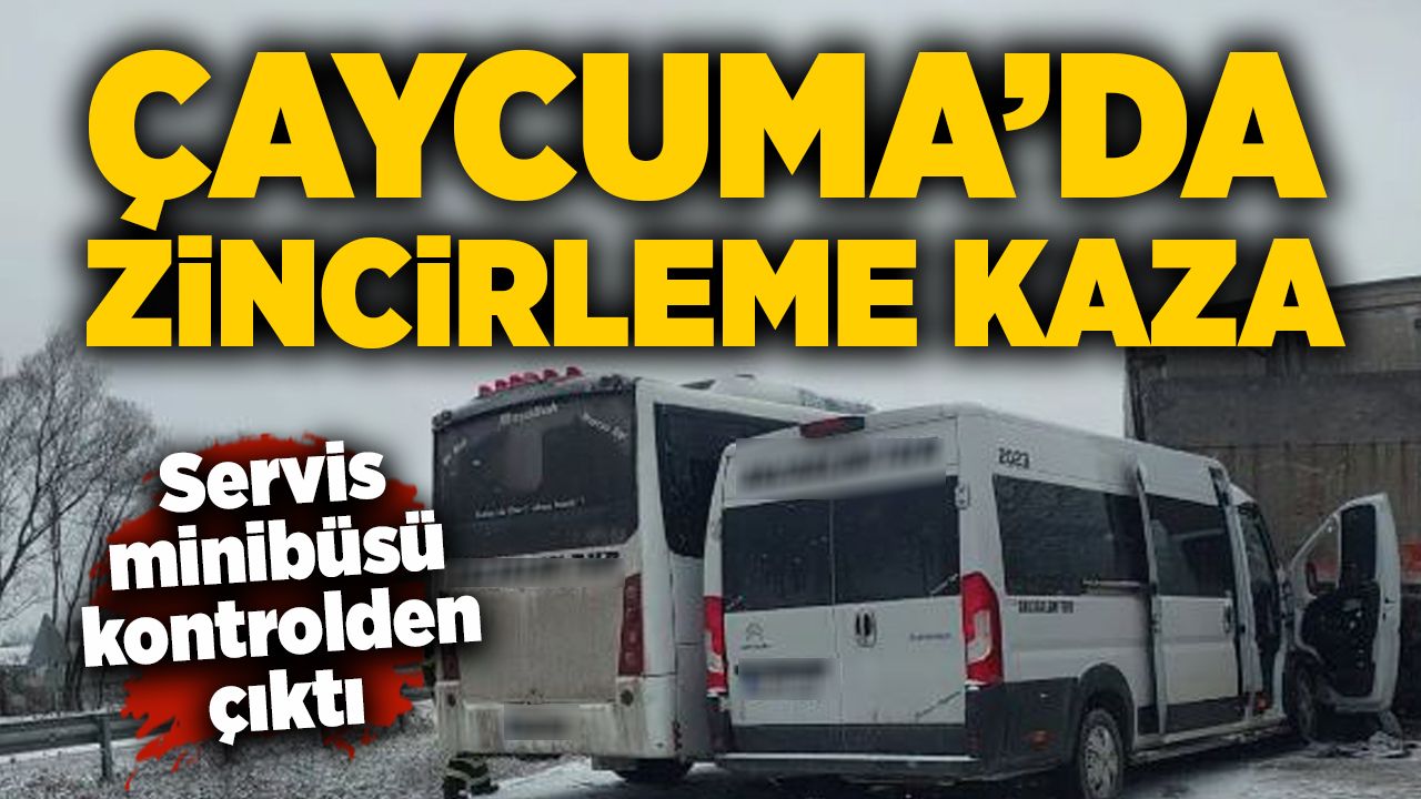 Çaycuma ilçesi İstasyon Mahallesi’nde sabah saatlerinde meydana gelen zincirleme trafik kazası paniğe neden oldu. Kar yağışı ve buzlanma nedeniyle kayganlaşan yolda seyir halindeki bir servis minibüsü, sürücüsünün direksiyon hakimiyetini kaybetmesi sonucu önce yanındaki otobüse, ardından önündeki kamyona çarptı.
