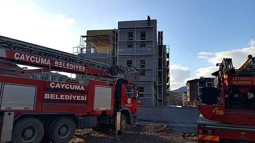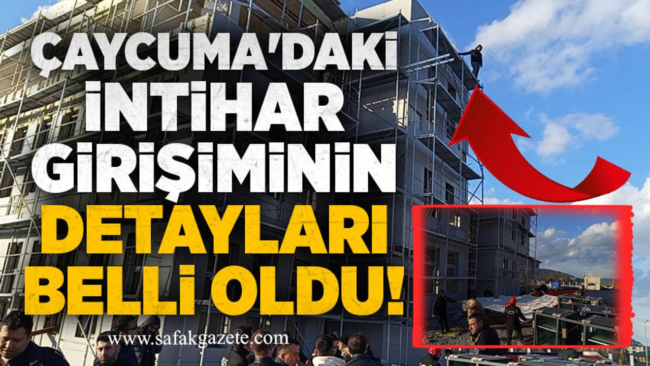 Olay, Yenimahalle Yalı Caddesi üzerindeki Tarım ve Orman İlçe Müdürlüğü hizmet binası inşaatında meydana geldi. İddiaya göre, yüklenici firmadan alacağını alamayan N.U. isimli işçi, binanın 3. katındaki iskeleye çıktı. Çevredekilerin ihbarı üzerine bölgeye sağlık, polis ve Çaycuma Belediyesi İtfaiye Müdürlüğü ekipleri sevk edildi. İtfaiye ekipleri, şahsın atlama ihtimaline karşı zemine hava yastığı açarak önlem aldı. Yaklaşık 1 saat süren ikna çalışmalarına işçinin mesai arkadaşları da destek verdi. Uzun uğraşlar sonucu ikna edilen N.U., bulunduğu yerden güvenli bir şekilde indirildi. Sağlık ekiplerince ilk müdahalesi yapılan işçi, ambulansla Çaycuma Devlet Hastanesi'ne götürüldü.