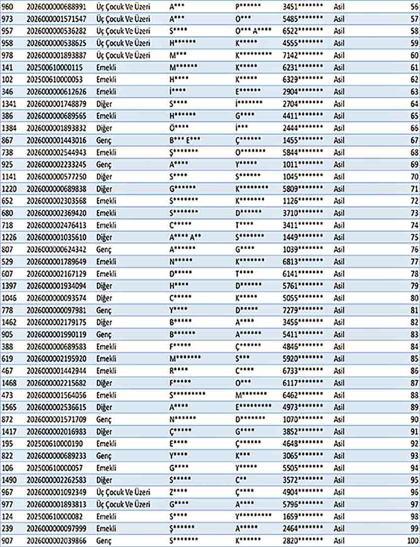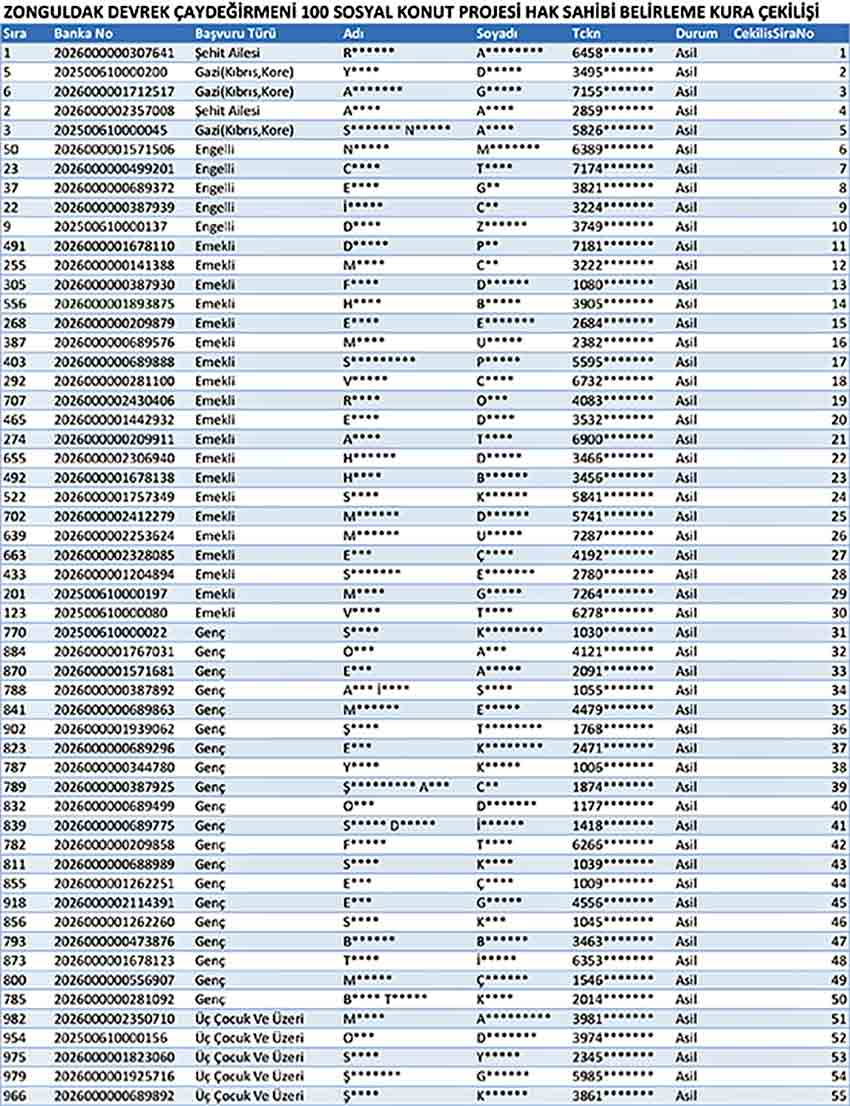 Gerçekleştirilen kura çekiminde ÇAYDEĞİRMENİ TOKİ HAK SAHİPLERİ LİSTESİ