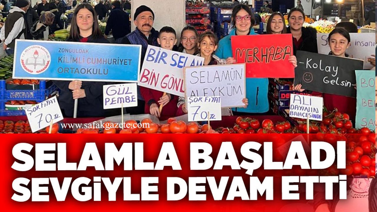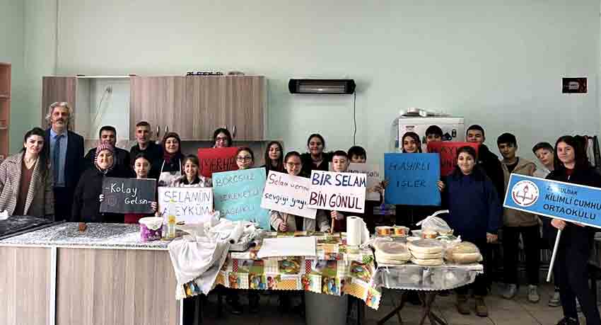 Kilimli Ziya Gökalp İlkokulu ve Kilimli Cumhuriyet Ortaokulu öğrencileri, Çevreme Duyarlıyım Değerlerime Sahip Çıkıyorum (ÇEDES) Projesi kapsamında Kilimli Semt Pazarı'nda "Selamı Yay, Sevgiyi Çoğalt" temalı etkinlik gerçekleştirdi.