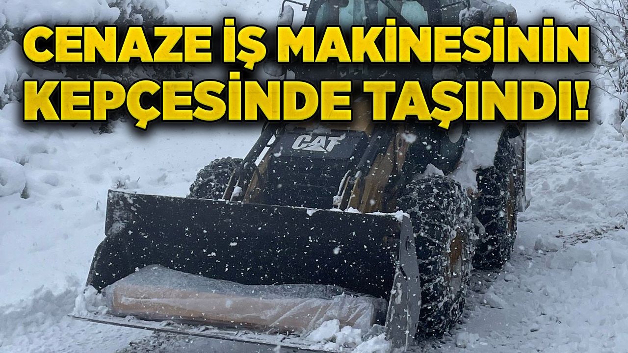 Rize’de kar yağışı nedeniyle köy yolu kapanınca cenaze iş makinesinin kepçe kısmına konularak taşındı.