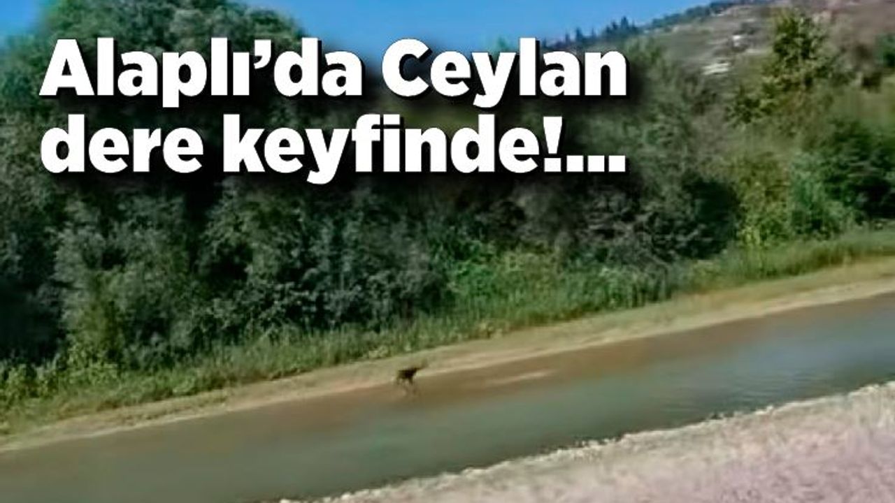Zonguldak’ın Alaplı ilçesi ile Mollabey Köyü arasındaki çay kenarında nadir görülen bir olay yaşandı. Hava sıcaklığının mevsim normallerinin üzerinde seyrettiği bölgede, sıcaktan bunalan bir ceylan serinlemek için dereye girdi.