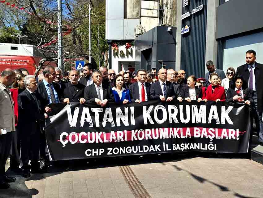 Cumhuriyet Halk Partisi Zonguldak il örgütü tarafından, 23 Nisan Ulusal Egemenlik ve Çocuk Bayramı dolayısıyla Türkiye’nin 81 ilinde ve 973 ilçesinde eş zamanlı bir basın açıklaması gerçekleştirdi. Zonguldak İl başkanlığı önünde başlayan yürüyüşe Zonguldak Belediye Başkanı Tahsin Erdem, eşi Hande Erdem, CHP İl Başkanı Devrim Dural Birgül CHP Merkezi ilçe başkanı Nazmi Özden ve partiler katıldı.