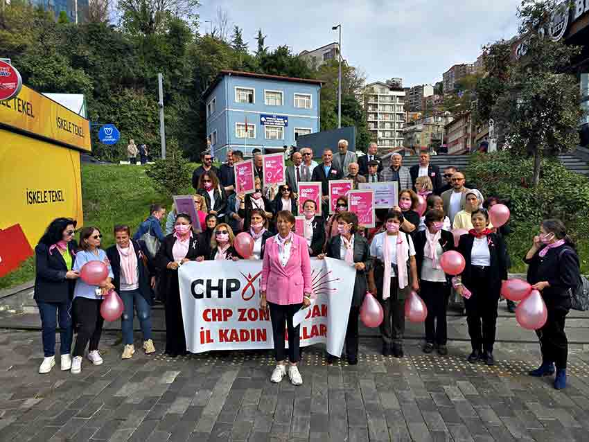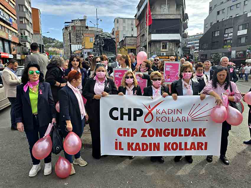 Cumhuriyet Halk Partisi (CHP) Zonguldak İl Kadın Örgütü, 1-31 Ekim Meme Kanseri Farkındalık Ayı kapsamında Madenci Anıtı’nda basın açıklaması yaparak farkındalık yürüyüşü gerçekleştirdi. Etkinliğe; CHP İl Başkanı Devrim Dural, Merkez İlçe Başkanı Nazmi Özden, il yönetim kurulu üyeleri, belediye meclis üyeleri, il genel meclisi üyeleri ve çok sayıda kadın katıldı.