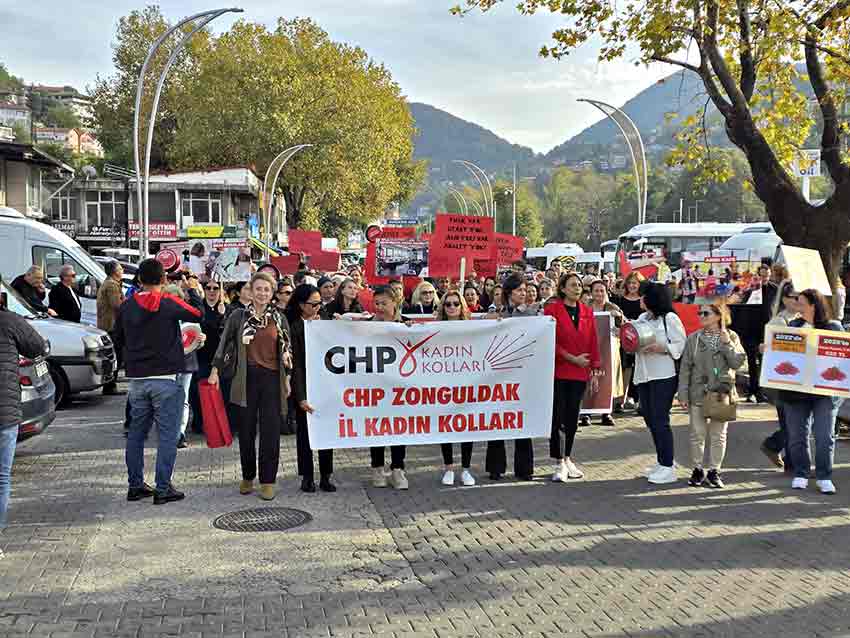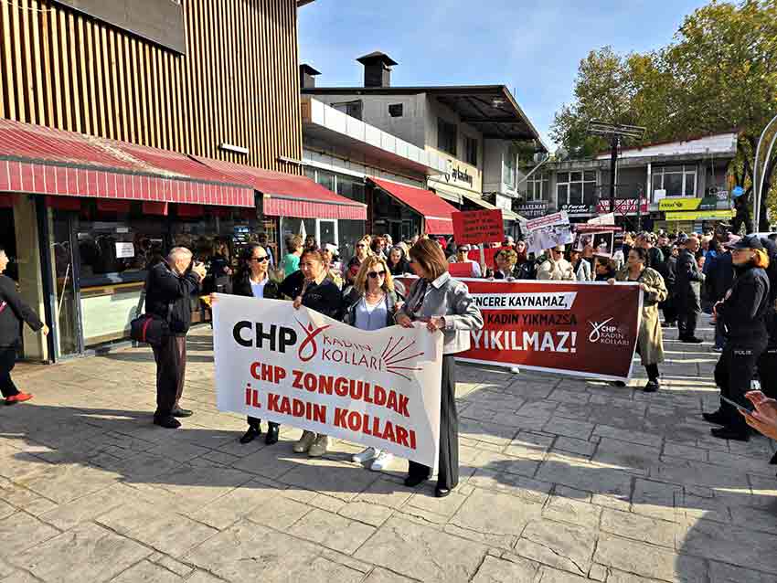 Protestocu grup, İstasyon Meydanı'ndan Madenci Anıtı önüne kadar sloganlar ve düdükler eşliğinde yürüdü. Yürüyüşün ardından CHP İl Kadın Kolları Başkanı Nazan Pulat, burada bir basın açıklaması yaptı. Pulat yaptığı açıklamada "17 Ekim Yoksullukla Mücadele Günü Ortak Basın Açıklaması Değerli Basın Emekçileri, Kıymetli Yol Arkadaşlarımız, Değerli Kadınlar, Bugün 17 Ekim Dünya Yoksullukla Mücadele Günü.Bugün bir takvim yaprağından ibaret değil; milyonlarca insanın açlığına, işsizliğine, çaresizliğine karşı yükselen bir itirazdır. Bugün, "Yeter artık!" deme günüdür!