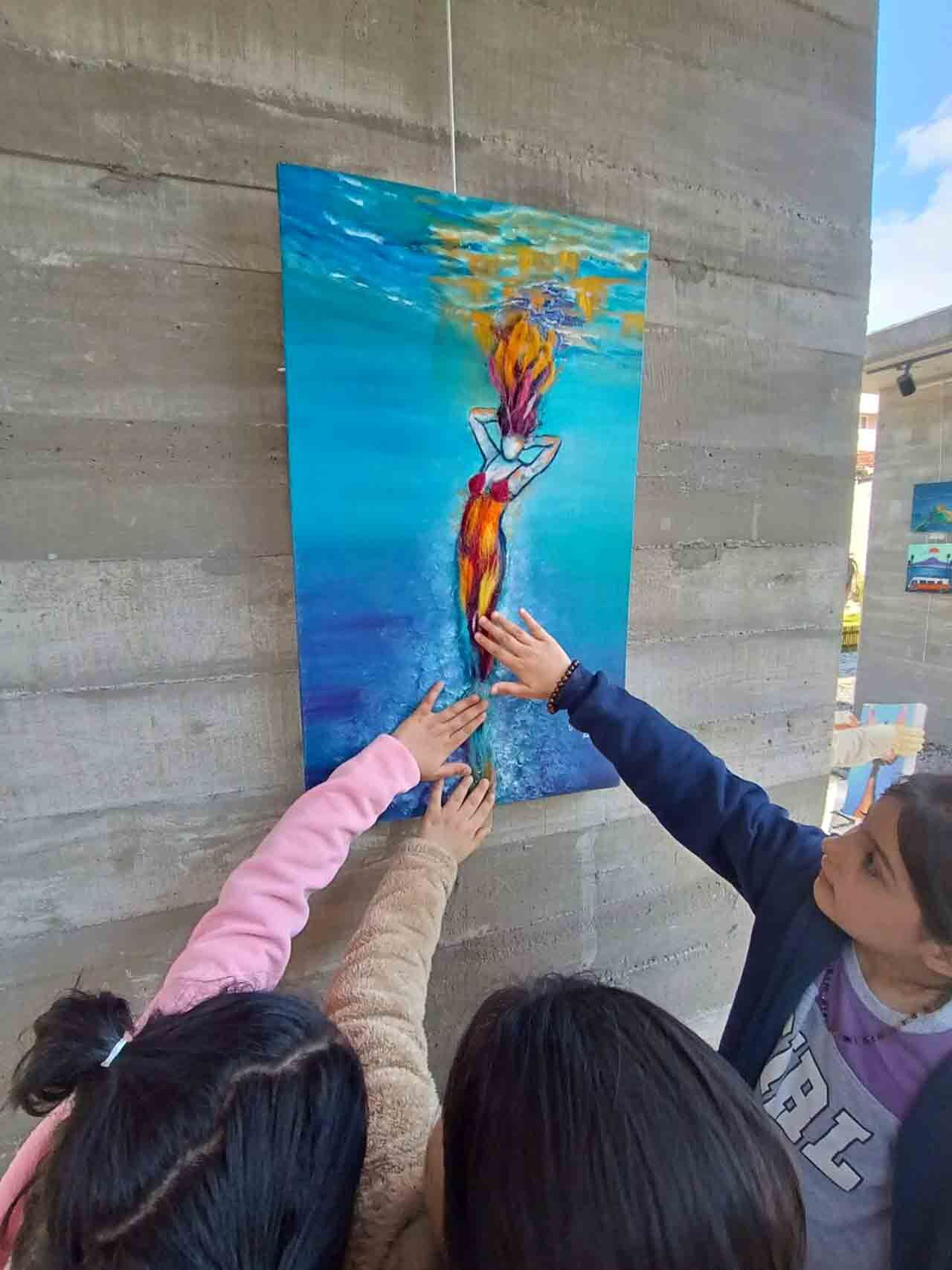 Yöre halkı akın akın sergiyi gezdiler ve tablolara hayran kaldılar. Bu arada çocuk sanatçıların da yaptığı tablolar sergide büyük ilgi çekti.
