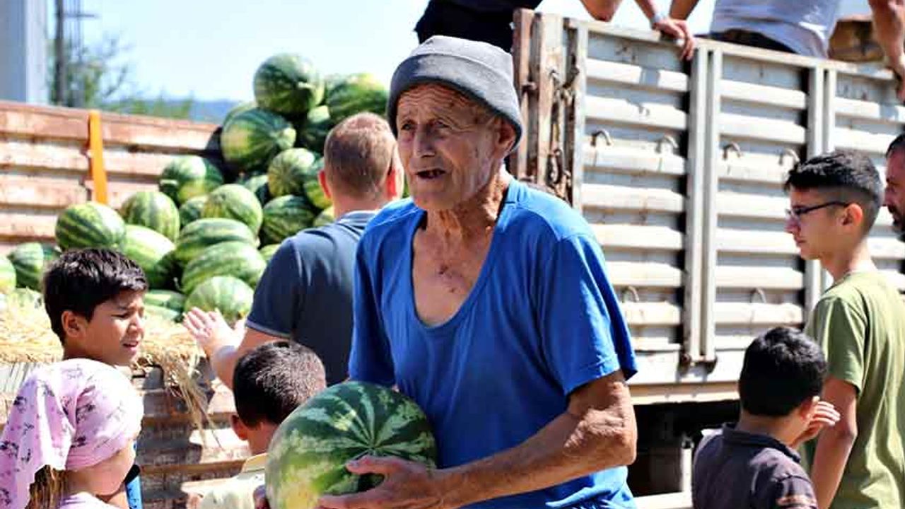 Başkan Mustafa Koloğlu, "Bilecikli bir çiftçimiz tarafından ücretsiz bir şekilde 1 tır dolusu karpuzu vatandaşlarımıza dağıtmak üzere ilçemize getirdik. Bu sıcak ve bunaltıcı havalarda ekiplerimiz, vatandaşlarımıza karpuzları ücretsiz olarak dağıttı. Hayırsever çiftçimize vatandaşlarımız adına teşekkür ediyorum" ifadelerini kullandı.