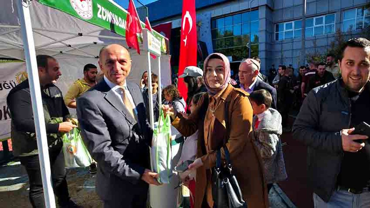 Zonguldak Site Kapalı Spor Salonu’nda düzenlenen 29 Ekim Cumhuriyet Bayramı kutlamalarının ardından gerçekleştirilen etkinlikte, Orman Bölge Müdürü Hasan Keskin, işletme şefleri, Orman Muhafaza Memurları ve Ateş Savaşçıları vatandaşlara fidan dağıttı.