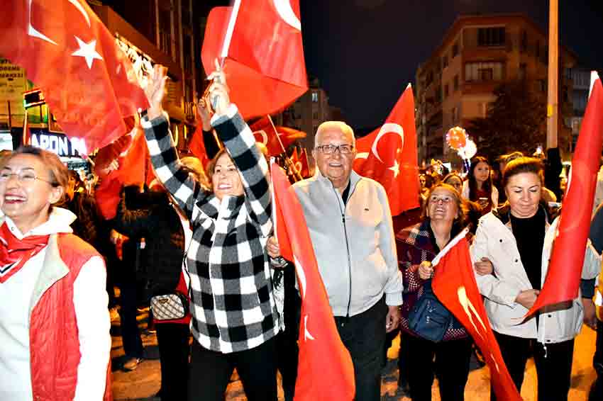 Vatandaşlar hep birlikte “Mustafa Kemal’in Askerleriyiz” diyerek yürürken, marşlar eşliğinde “Yaşasın Cumhuriyet, Yaşasın Atatürk” sesleri yükseldi. Posbıyık konuşmasında, “Cumhuriyet sadece bir yönetim biçimi değil; bir ulusun kendi iradesiyle ayağa kalkabilmesinin en büyük sembolüdür. Atatürk’ün ışığı hiç sönmeyecek” ifadelerini kullandı.