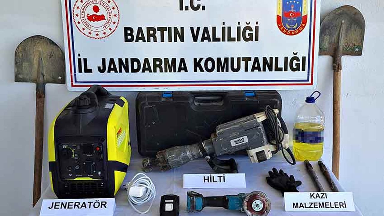 İl Jandarma Komutanlığı ekipleri, yaptı baskında 3 şüpheli şahsın izinsiz kazı yaptıkları tespit etti. Şahıslar suç üstü yalanırken, kazıda kullanılan 1 adet jeneratör, 1 adet beton delici, 2 adet kürek, 1 adet spiral, 2 adet murç, 3 metre kablo, 4 litre benzin, 1 çift eldiven ele geçirildi.
