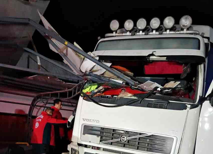 Edinilen bilgiye göre, merkez Akdeniz ilçesi Gazi Mahallesi İnönü Bulvarı üzerinde bulunan narenciye tesisine yükleme için gelen Ökkeş P. idaresindeki yabancı plakalı tır, manevra yaptığı sırada tesisteki korkuluk demiri şoför kabinine saplandı. Araç içerisinde sıkışan sürücü yaralanırken, olay yerine sağlık ve itfaiye ekipleri sevk edildi. Mersin Büyükşehir Belediyesine bağlı itfaiye ekiplerince yapılan çalışmada, sürücü Ökkeş P., sıkıştığı araçtan çıkarılarak sağlık ekiplerine teslim edildi. Ambulansla hastaneye kaldırılan tır sürücüsünün sağlık durumunun iyi olduğu bildirildi.