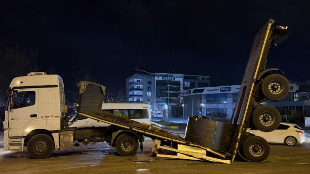 Olay, Payas-Dörtyol arasındaki D-81 karayolunda yaşandı. S.S. idaresindeki 33 NIV 37 plakalı demir rulo yüklü tırın dorsesi, seyir halindeyken ortadan ikiye ayrıldı. Dorseden düşen rulolar yola saçılırken, dorsenin arka kısmı şaha kalktı. İlginç görüntünün ortaya çıktığı kazada polis ekipleri bölgeye gelerek güvenlik önlemi aldı. Çevrede alınan önlemlerin ardından araç ve demir rulolar yoldan kaldırıldı.