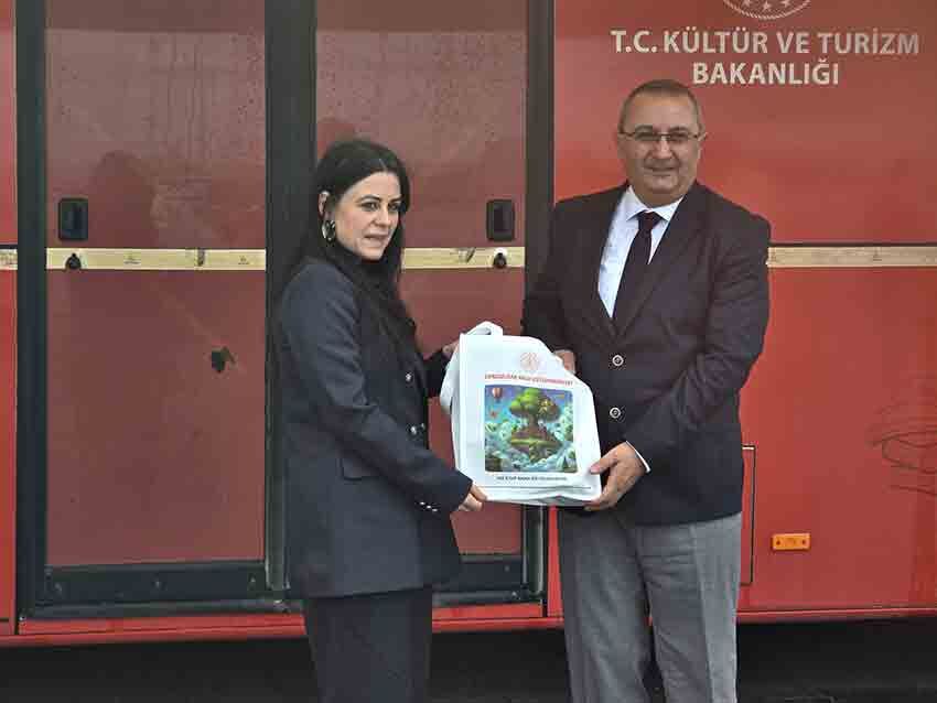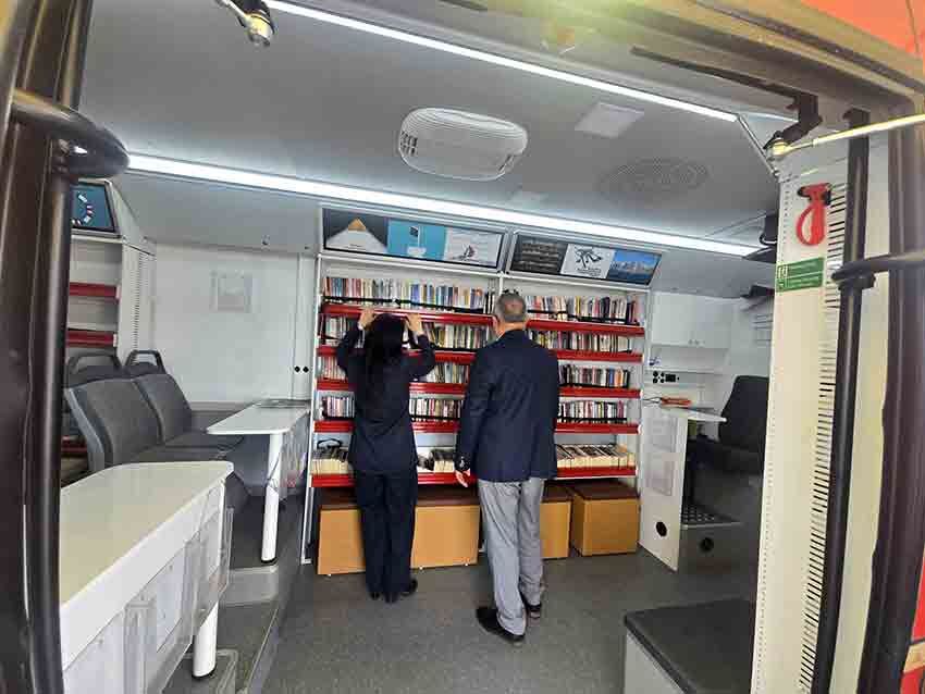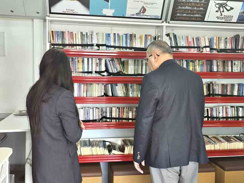 Ziyaret sırasında Aydemir’e, Kütüphane Müdür Vekili Berivan Çelik eşlik etti. Çelik, gezici kütüphane aracında bulunan kitaplar ve yürütülen çalışmalar hakkında bilgi verdi.