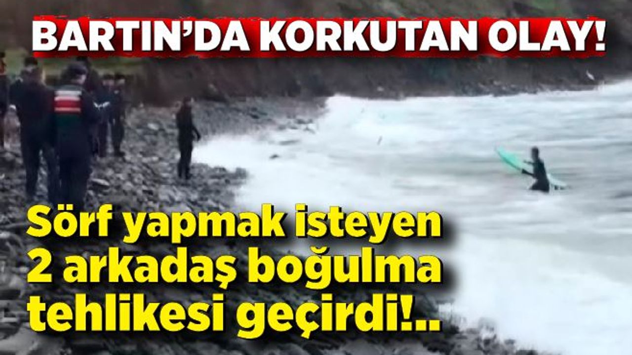 İstanbul'dan Bartın'ın Kurucaşile ilçesine bağlı Hisar köyü Çambu Yalısı mevkisine sörf yapmak için gelen 2 arkadaş, dalgalı denize girdi. Sörf yapan arkadaşlar, bir anda dalgalarla sürüklenmeye başladı. Vatandaşlar durumu jandarma, sağlık ve Sahil Güvenlik Batı Karadeniz Grup Komutanlığı ekiplerine haber verdi. Vatandaşların ihbarı üzerine olay yerine gelen jandarma ekipleri, 2 arkadaşı kurtarmak için çalışma başlattı. Dalga boyunun 2 metreye ulaştığı denizde yaklaşık 1 saat dalgalarla boğuşan 2 arkadaş daha sonra kıyıya ulaşmayı başardı. Jandarma ekiplerinin tedirgin bekleyişi ve arkadaşların karaya ulaşma anları ise çevredeki vatandaşların cep telefonu kameralarına yansıdı. Kıyıya ulaşan 2 arkadaş, tedbir amaçlı Kurucaşile Sağlık Ocağı'na götürülerek sağlık kontrolünden geçirildi.