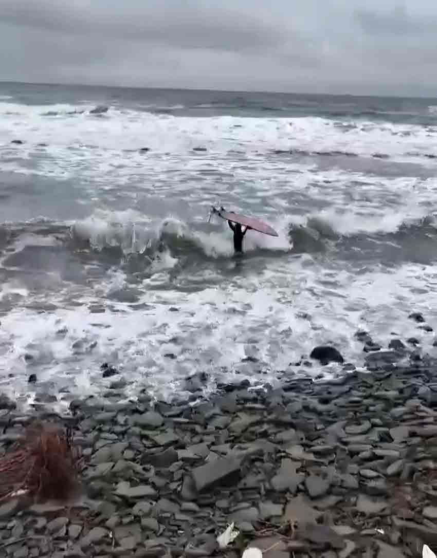 Bartın'ın Kurucaşile ilçesi Hisar köyüne sörf yapmak için gelen iki arkadaş, dalgalar nedeniyle zor anlar yaşadı. Güçlükle kıyıya ulaşmayı başaran 2 kişi, tedbir amaçlı sağlık ocağına götürüldü.