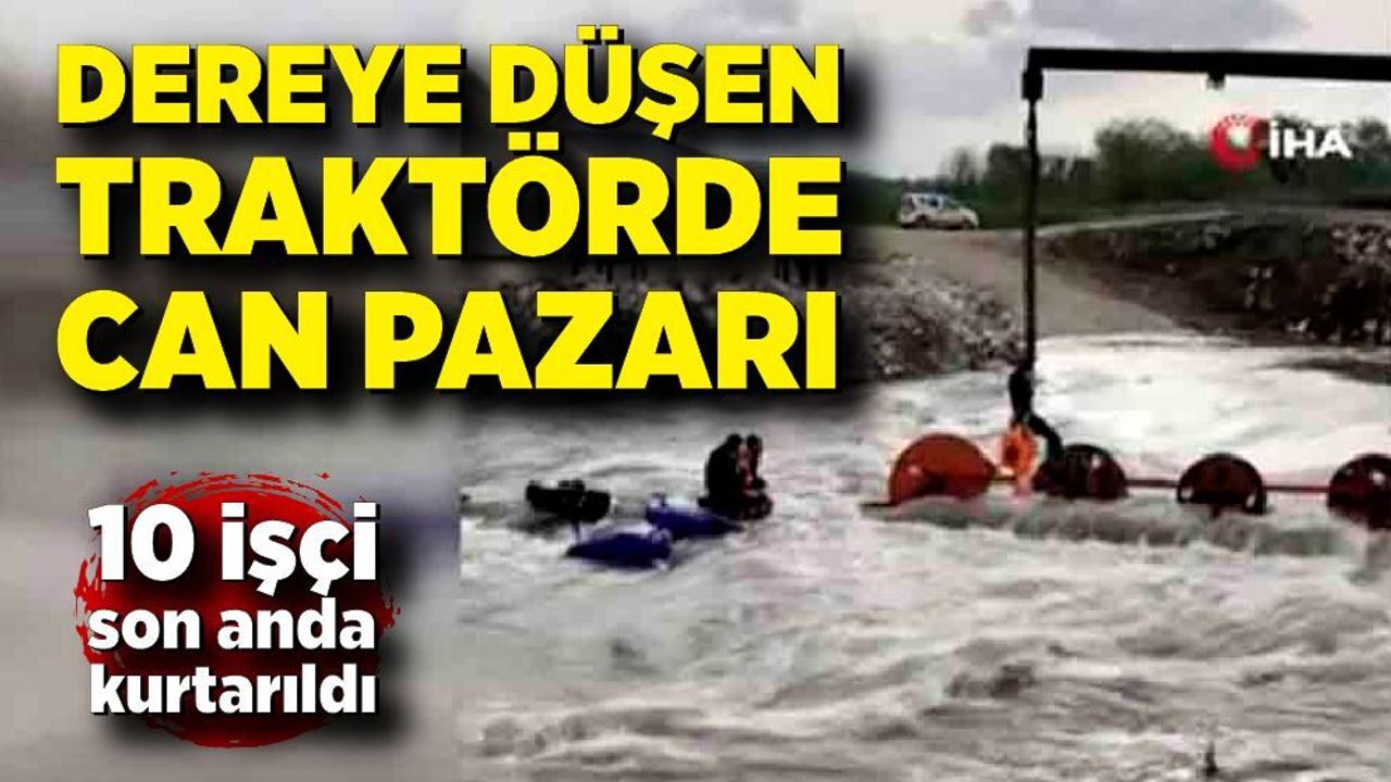 Bursa’nın Yenişehir ilçesinde Kocasu Deresi’ni traktörle geçmek isteyen işçiler zor anlar yaşadı. İçinde 10 işçinin bulunduğu traktör, suyun ortasında kontrolden çıkarak devrildi.