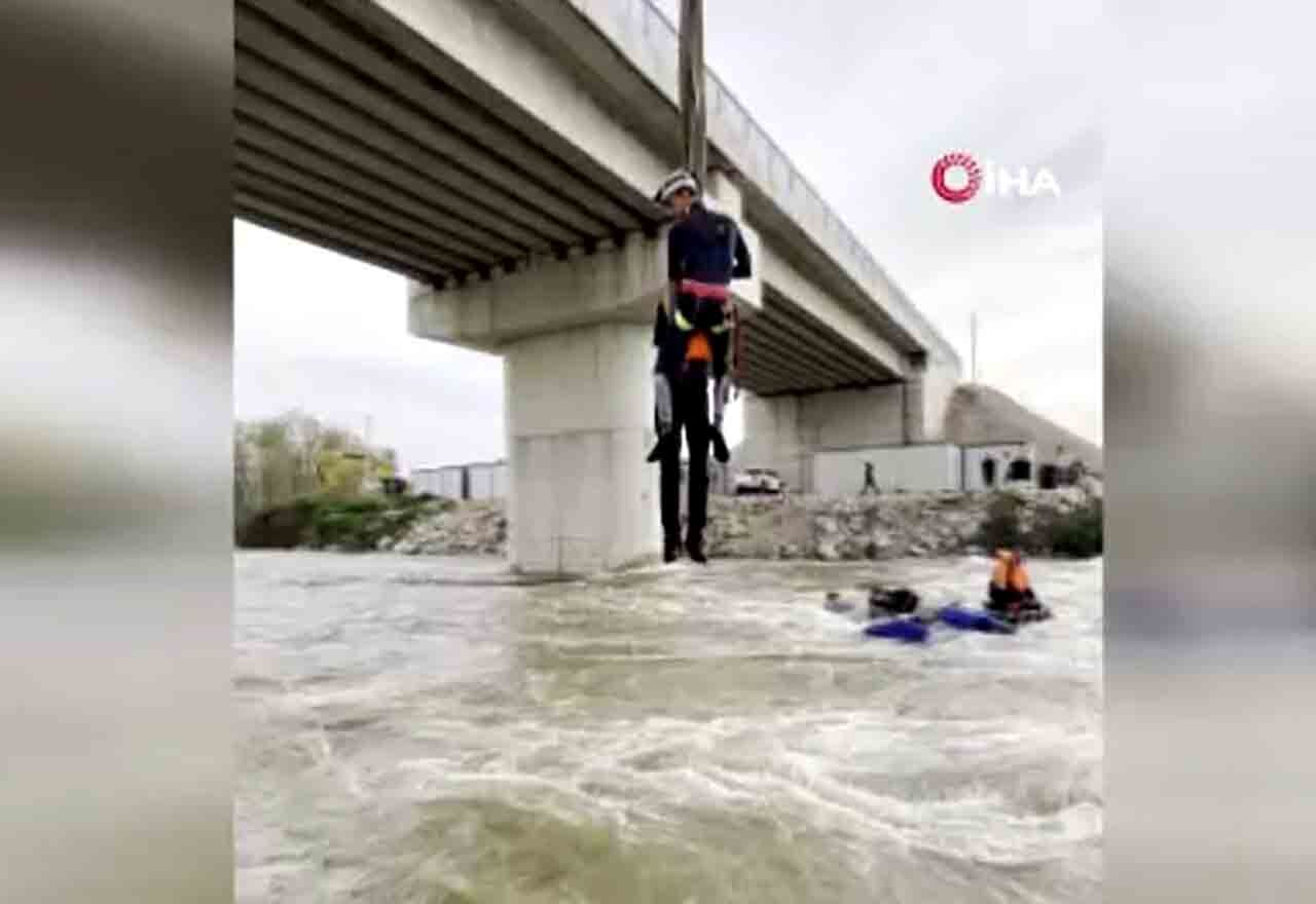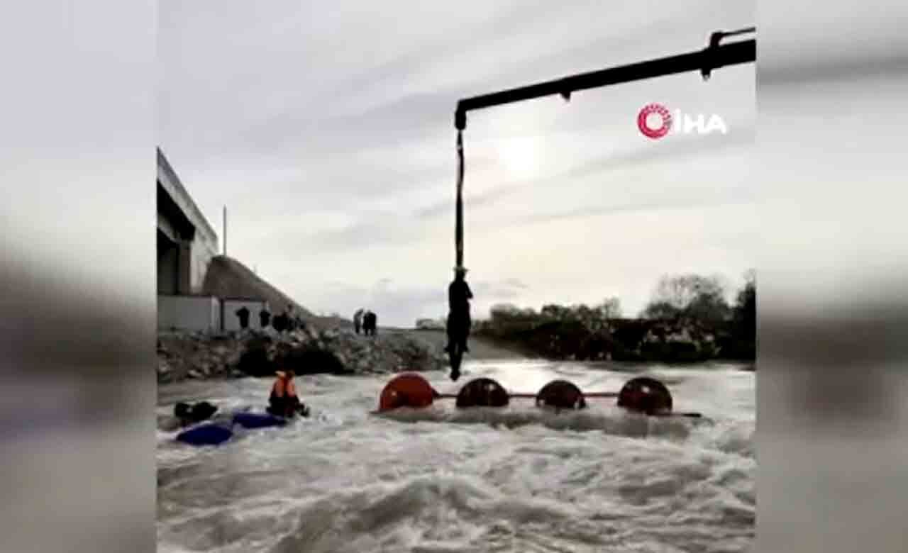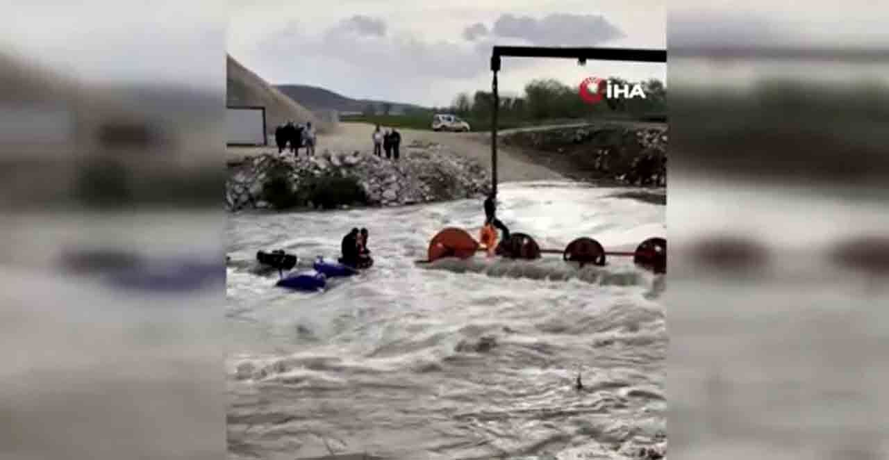 Akıntının etkisiyle dengesini kaybeden araç devrilince işçiler dere içinde mahsur kaldı. Olay kısa sürede çevrede paniğe neden oldu.
