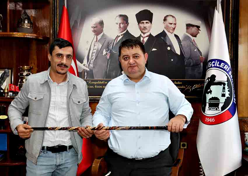 Saraçoğlu da birlik ve beraberlik mesajı vererek Genel Başkan Yeşil’e Devrek bastonu takdim etti. Saraçoğlu ve Yönetim Kurulu ardından GMİS Genel Sekreteri Yener Arslanbuğa’yı da makamında ziyaret ederek Devrek bastonu takdim etti.