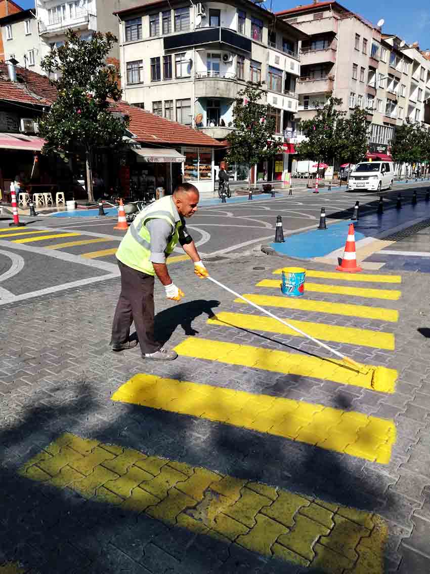 Özellikle vatandaşların yoğun olarak kullandığı noktalarda yapılan çalışmalarla, yaya geçitleri daha görünür ve güvenli hale getiriliyor. Dayanıklılığı yüksek yol çizgi boyası kullanılan uygulama sayesinde, sürücülerin yaya geçitlerini erken fark etmesi ve yayaların can güvenliğinin sağlanması amaçlanıyor.