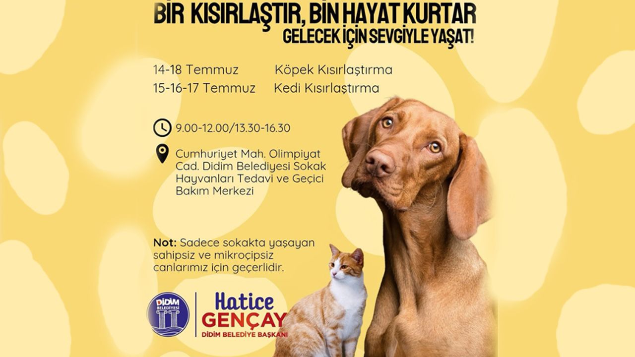 "Bir Kısırlaştır, Bin Hayat Kurtar" sloganıyla duyurulan uygulama, 14-18 Temmuz tarihleri arasında Didim Belediyesi Sokak Hayvanları Tedavi ve Geçici Bakım Merkezi’nde yapılacak.