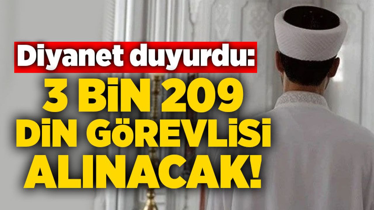 Diyanet İşleri Başkanlığı, taşra teşkilatında görevlendirilmek üzere 3 bin 209 imam hatip ve Kur’an kursu öğreticisi alımı yapacak. Başvurular 20 Nisan–4 Mayıs tarihleri arasında online olarak gerçekleştirilecek.