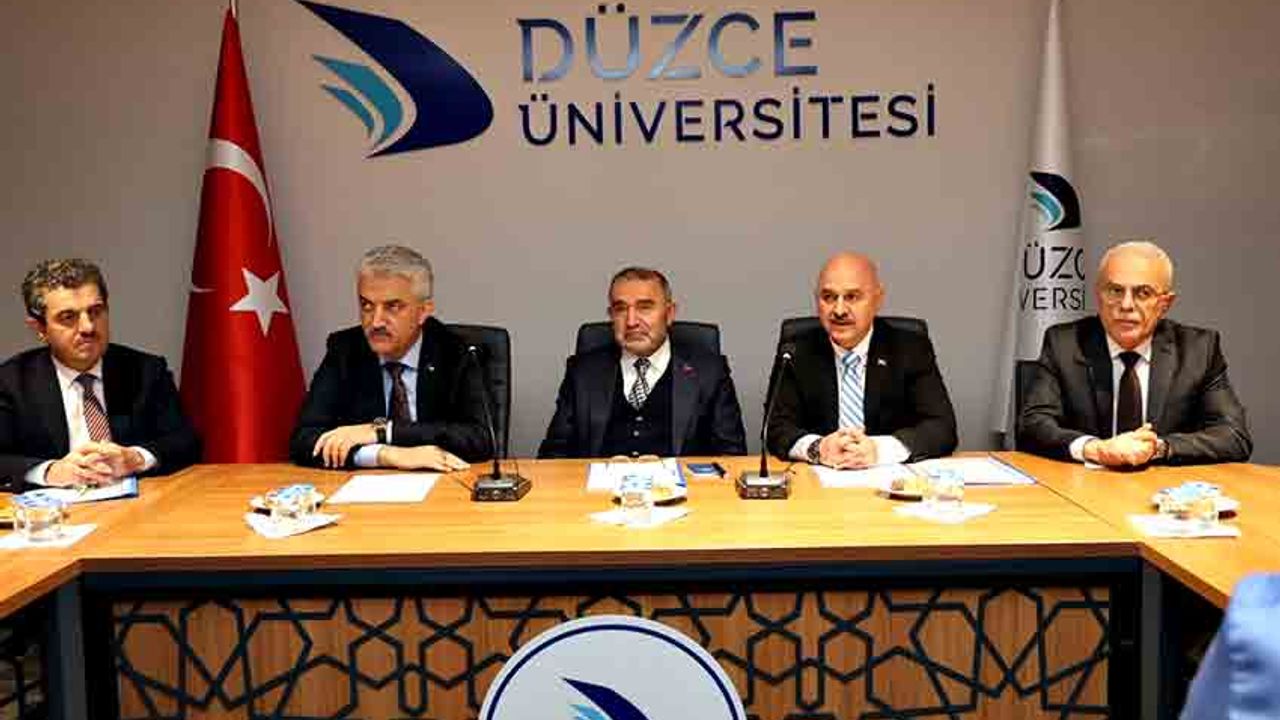 Düzce Üniversitesi Rektörü Prof. Dr. Nedim Sözbir, üniversitede yürütülen ulusal ve uluslararası projeler, bilimsel araştırmalar ve bölgesel kalkınmaya katkı sağlayan uygulamalar hakkında heyete kapsamlı bilgiler sundu. Rektör, ziyaretlerinden dolayı Dr. İsrafil Kışla’ya teşekkürlerini iletti.