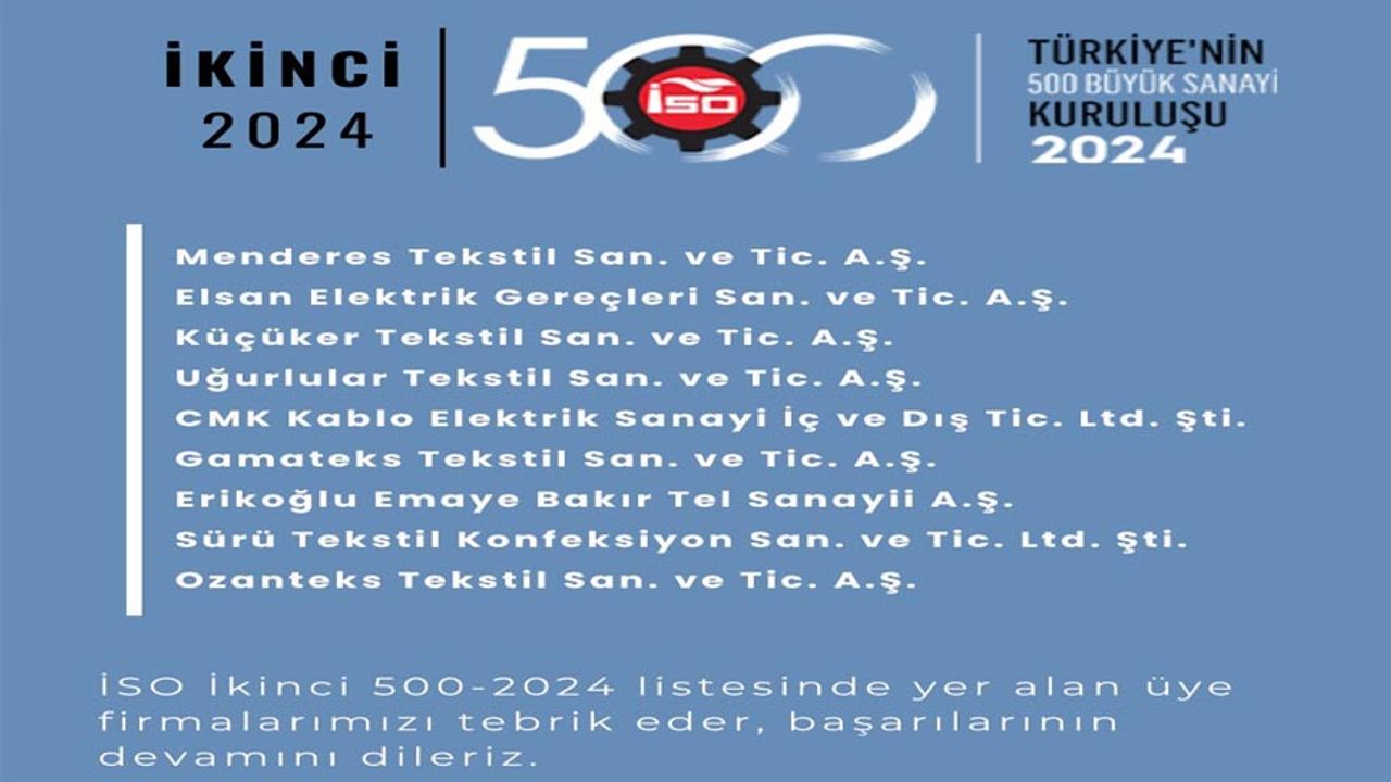 DSO Yönetim Kurulu Başkanı Selim Kasapoğlu, "İSO İkinci 500-2024 araştırması, içinden geçmekte olduğumuz ekonomik ve finansal şartları, ihracat performanslarını, AR-GE ve teknoloji faaliyetlerine ilişkin göstergeleri açısından önemli sonuçlar ortaya koydu. 2023 yılında 11 olan firma sayımız geçen yıl 9’a düşmüştü. Bu yıl da listede 9 Denizlili firmamızın yer aldığını görüyoruz. İlk 500’deki 14 firmamızla birlikte İSO İlk 1000’de toplam firma sayımız 23 oldu. Geçtiğimiz yıl ikinci 500 listesinde bulunan bir firmamız listede yer almazken, ilk 500'de yer alan bir firmamız ikinci 500 listesine dahil oldu. Firmalarımızdan 7’si geçen seneye göre daha üst sıralarda listede kendisine yer buldu. Hepimizin malumu olduğu üzere 2024 yılı ekonomik konjonktür anlamında zor bir yıl oldu. 2025’in ilk yarısı ise hem ekonomik hem de küresel faktörlerin ve gelişmelerin etkisi altında geride kaldı. Yaşanan tüm bu olumsuzluklara rağmen sanayicilerimiz üretime devam etmek, sahip olunan pazarları kaybetmemek için mücadele ediyor. Yaşanan tüm zorluklara rağmen, yatırımlarıyla ekonomik büyümemize, ihracatımıza ve istihdama katkılarını sürdürerek, ikinci 500 listesinde kendisine yer bulan tüm firmalarımızı tebrik ediyorum. Önümüzdeki yıllarda listedeki firma sayımızın artmasını diliyorum." ifadelerini kullandı.