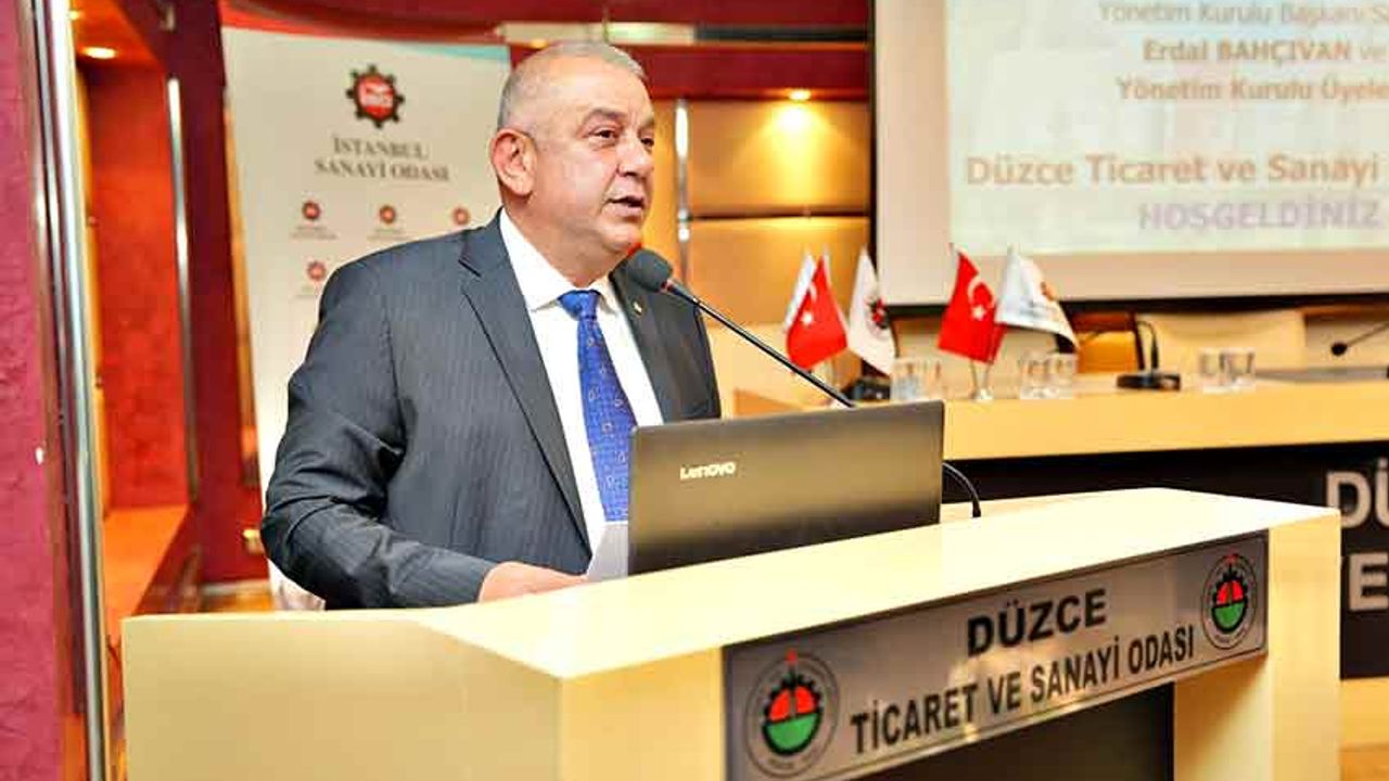 İstanbul Sanayi Odası (İSO) Yönetim Kurulu Başkanı Erdal Bahçıvan ve Yönetim Kurulu Üyeleri, Düzce Ticaret ve Sanayi Odası'nı ziyaret etti. Düzce Ticaret ve Sanayi Odası (DTSO) Başkanı Erdoğan Bıyık, Meclis Başkanı Tanju Acar, yönetim kurulu ve meclis üyeleri hazır bulundu. Programında ilk olarak DTSO’nun tanıtım filminin sunumu yapıldı. Sonrasında Oda Başkanı Erdoğan Bıyık Düzce'nin sanayi ve turizm alanlarında gelişimini sürdürdüğünü belirterek, "Bildiğiniz üzere 1999 yılında yaşanan depremlere kadar Düzce, Bolu iline bağlı bir ilçeydi. Bu nedenle ilimizin gelişimi, Bolu’ya endeksliydi. Depremlerden sonra Düzce’nin il olarak ilan etmesi ve hemen ardından da kalkınmada öncelikli bölgeler listesine almasıyla birlikte Düzce’de hızlı bir sanayileşme başladı. Şu anda ilimizde 4 OSB ve 483 sanayici üyemiz yer almaktadır.