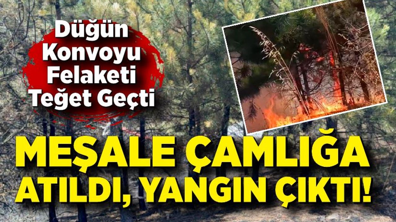 Düzce'de düğün konvoyunda araç üzerinde yakılan meşale, yol kenarındaki çamlığa atıldı. Yangın büyümeden söndürüldü.