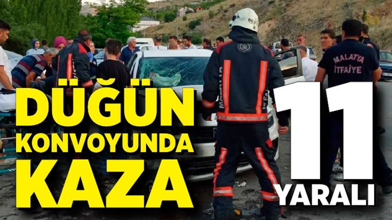 MALATYA'da, düğün konvoyunda iki otomobilin karıştığı kazada 11 kişi yaralandı.