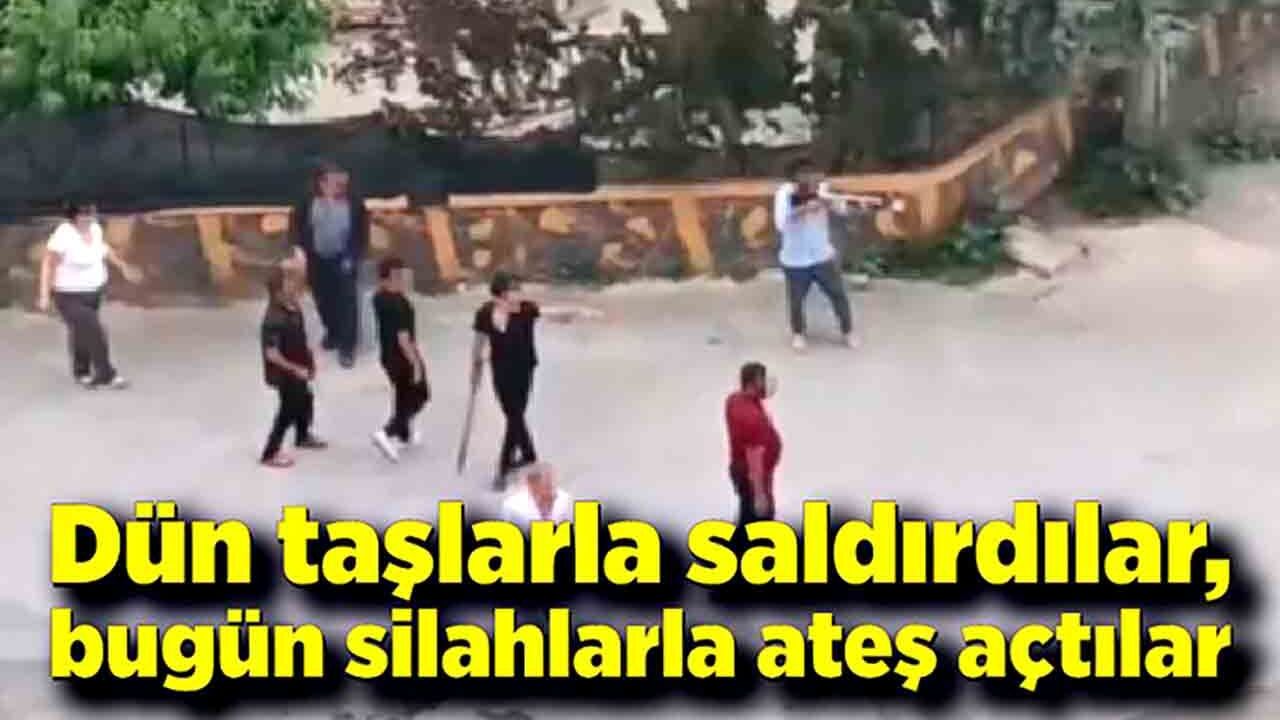 Bugün ise dün kavga eden iki grup arasında yaşadıkları Altaylılar Mahallesi'nde olay çıktı. Gruplardan biri yolun karşı tarafından diğer şahısların oturduğu eve doğru silahlarla ateş açtı. Karşı tarafta tüfekle karşılık vermeye çalıştı ancak tutukluk yaptı. O sırada polis ekipleri gelince, tüfeği biri alarak kaçtı. O anlar ise cep telefonu kamerasına saniye saniye yansıdı.