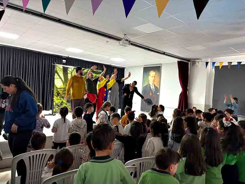 Öğrencilerin yoğun ilgi gösterdiği etkinlikte, salonu dolduran minikler tiyatronun eğlenceli dünyasıyla buluştu. Renkli sahneleri ve hareketli anlatımıyla dikkat çeken oyun, çocuklara keyifli anlar yaşatırken sanata olan ilgilerini artırmayı hedefledi.