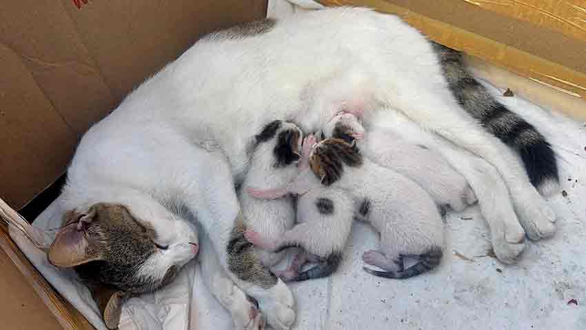 Demir, anne kedi ve yavrularına şefkatle baktıklarını ve hayvanların kendilerinden hiç çekinmediğini de sözlerine ekledi.