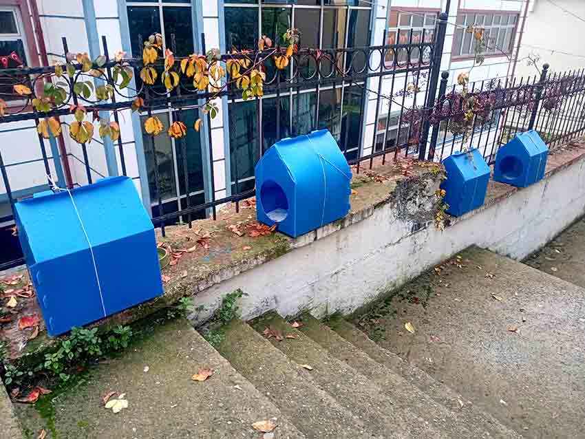 Hayvansever bu vatandaş bu kış için de yine kapısının önündeki kedilerini düşündü ve onlara tam dört adet yuva yaptı. Yuvaları merdivenlerin yanındaki duvara monta eden hayvansever şimdi onların yaklaşan kış aylarında bu yuvalara girmelerini ve kış aylarını bunların içinde geçirmelerini bekliyor. Hayvanları doyurması da yine her zamanki gibi kendisinden.
