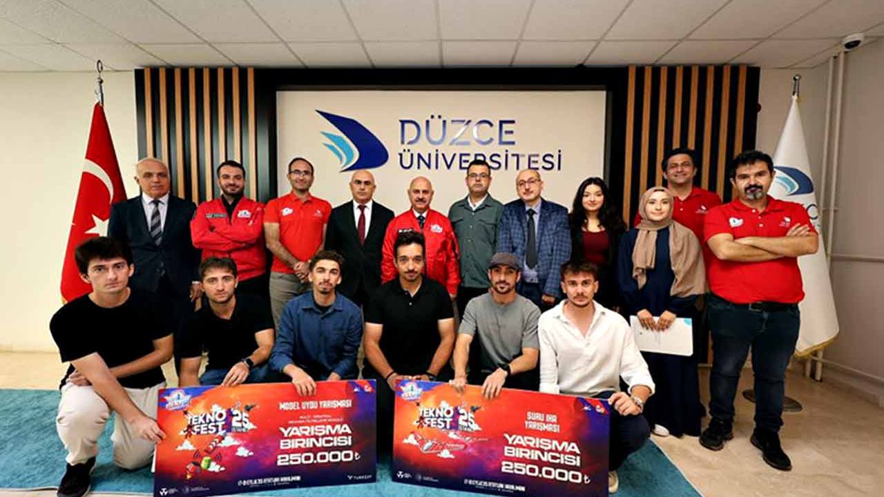 Türkiye Teknoloji Takımı Vakfı (T3 Vakfı) ve Sanayi ve Teknoloji Bakanlığı iş birliğiyle bu yıl 11’inci kez düzenlenen Türkiye’nin en kapsamlı havacılık, uzay ve teknoloji festivali TEKNOFEST’te, Düzce Üniversitesi öğrencileri iki farklı kategoride Türkiye birinciliği kazandı. Öğrenciler, ödüllerini Cumhurbaşkanı Recep Tayyip Erdoğan’ın elinden alma gururunu yaşadı.