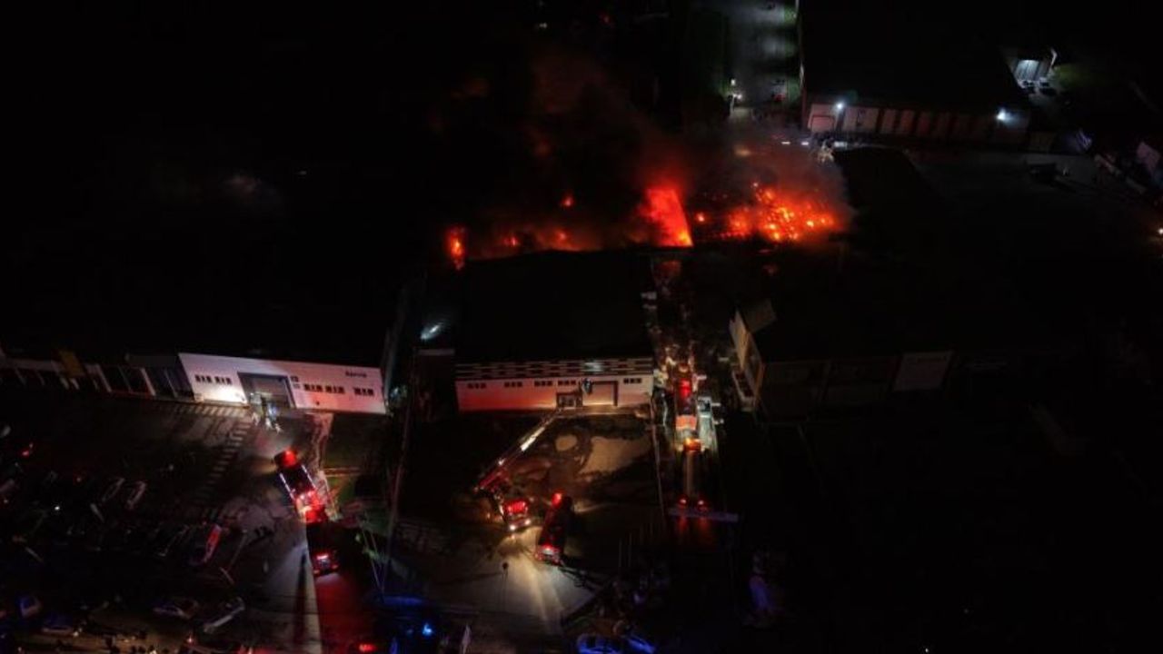 Öte yandan yangının devam ettiği fabrika havadan görüntülendi. Geceyi aydınlatan alevlerin büyüklüğü dron kamerasına yansıdı.