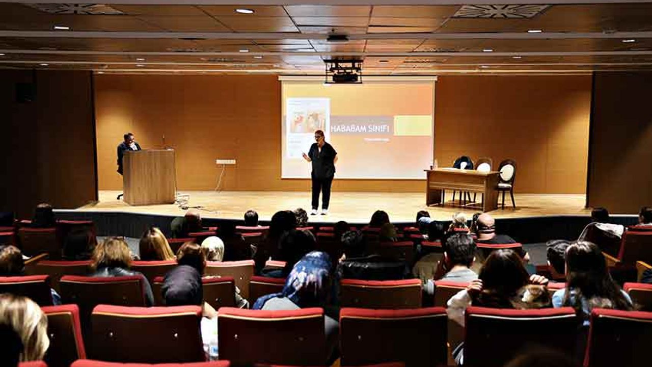 Öğrencilerin ve akademisyenlerin yoğun ilgiyle takip ettiği etkinliğin konuşmacısı Defne Ilgaz, sanatla iç içe geçen yaşam öyküsünü paylaştı. Marmara Üniversitesi’nde aldığı sanat eğitimiyle başlayan yolculuğunu ve sonrasında TRT’de televizyonculuk alanında edindiği tecrübeleri anlatan Ilgaz, bu süreçte yaşadığı zorluklar nedeniyle öğretmenliğe yöneldiğini ifade etti. Rıfat Ilgaz’ın ölümsüz eseri Hababam Sınıfı hakkında da önemli açıklamalarda bulunan Defne Ilgaz, kitapla film arasındaki farklara değindiği konuşmasında, kitapta yer almayan Damat Ferit karakteri, Rıfat Ilgaz’ın eserin filme uyarlanış biçimine duyduğu tepki ve açtığı davayı anlattı. Kitapta yer alan Şaban karakteri ile filmlerdeki Şaban figürü arasındaki farklarında konuşulduğu etkinlikte, katılımcılar Rıfat Ilgaz’ın eserlerinden uyarlanan filmler hakkında bilgi aldı.