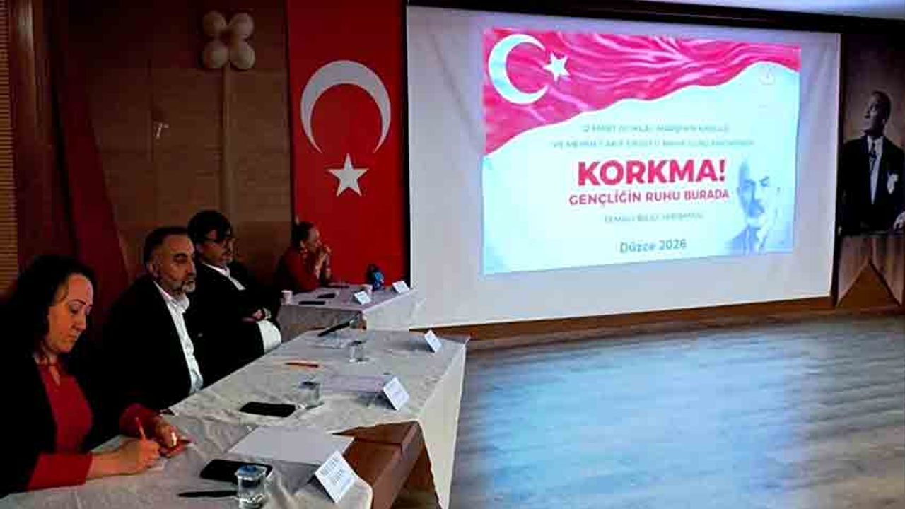 12 Mart İstiklal Marşı'nın kabulü etkinlikleri kapsamında Düzce’de ortaöğretim öğrencilerine özel bilgi yarışması düzenlendi. “Korkma Gençliğin Ruhu Burada” temalı yarışma, Mehmet Akif Ersoy’un hayatı ve İstiklal Marşı üzerine öğrencilerin bilgisini sınadı.