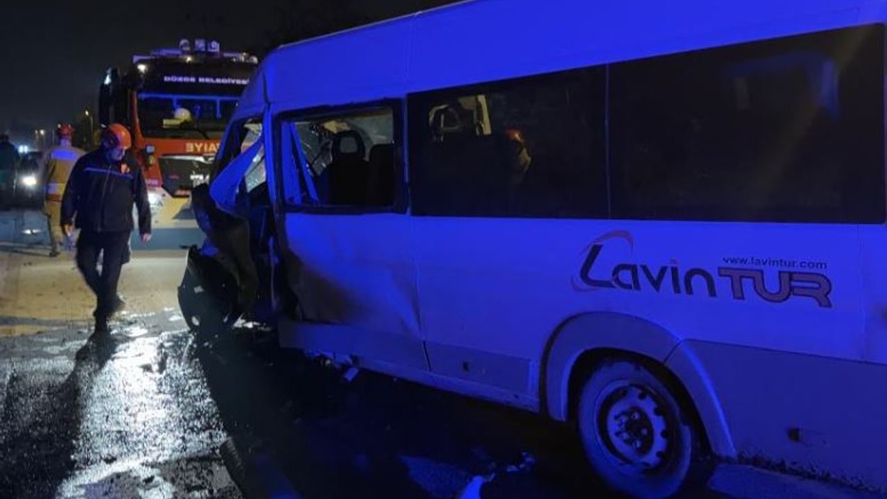 Kaza 23.00 sıralarında Aydınpınar Caddesi Turaplar Köyü mevkisinde meydana geldi. Edinilen bilgilere göre, Düzce şehir merkezi istikametine gitmekte olan Citröen marka 81 AFG 027 plakalı minibüs karşı istikametten gelen Mazda marka 06 AS 8847 plakalı otomobile çarptı. Çarpmanın etkisi ile otomobil ters şeride dönerken, minibüsün ise arka lastiği koptu. Kazada otomobil sürücüsü A.M. ile yanında yolcu olarak bulunan S.K. ve minibüste bulunan ancak başka bir araçla hastaneye götürülmesi nedeniyle ismi henüz tespit edilemeyen 1 kişi yaralandı.