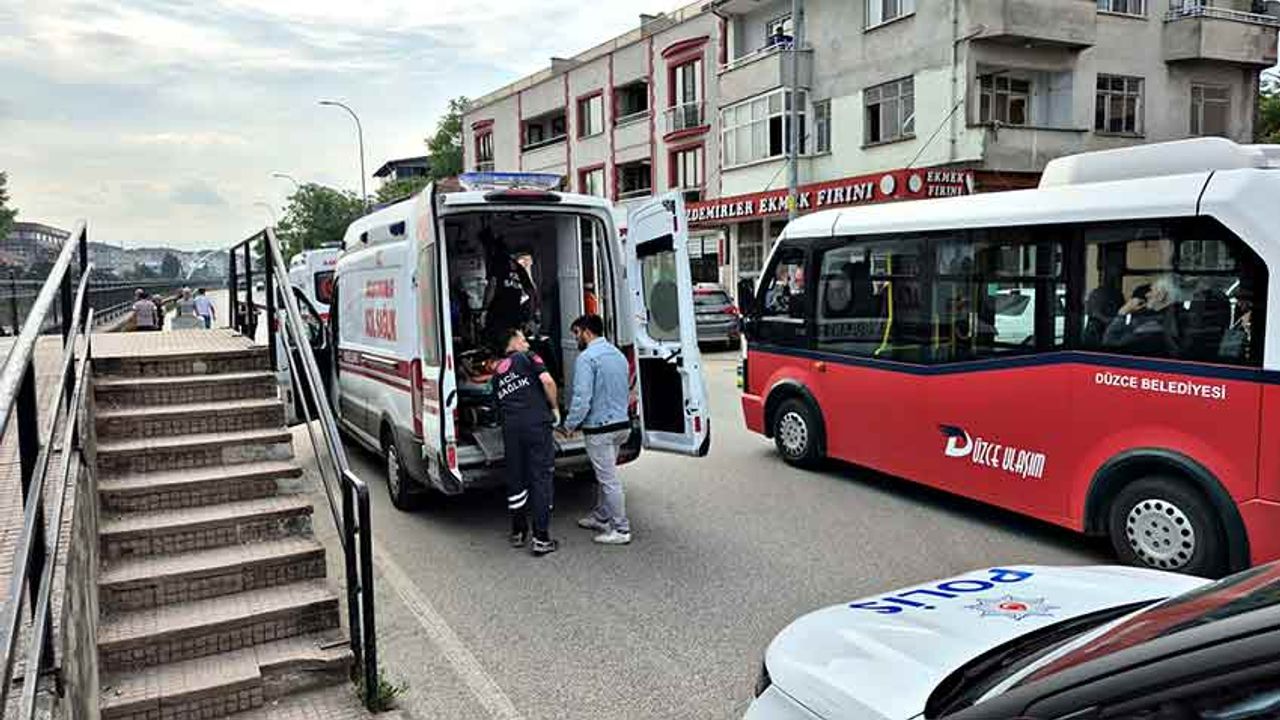 Düzce'de seyir halindeki motosiklet yolun karşı tarafına geçmeye çalışan kadına çarptı. Kazada motosikletli ile yaya yaralandı.