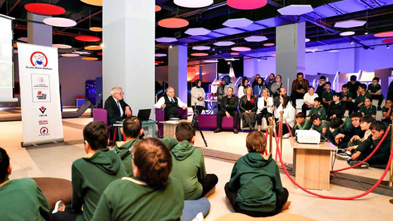 Bilim merkezinin kurulma amacını paylaşan Başkan Özlü, “Düzce’de bilimi sevdirmek, gençlerimizi teşvik etmek için bu merkezi hayata geçirdik. Yeter ki siz ilgilenin, biz her zaman yanınızdayız. Öğretmenlerinizle buraya gelin, etkinliklere katılın. Ne yapmak istiyorsanız en iyisini hedefleyin ve çok çalışın” dedi.