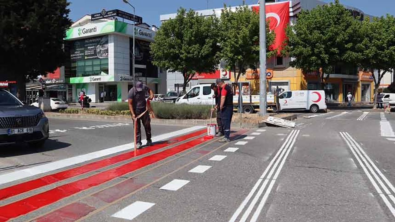 "Önce Yaya" anlayışıyla birlikte belirgin boyalar sürülerek sürücülerin daha dikkatli olmaları sağlanıyor.