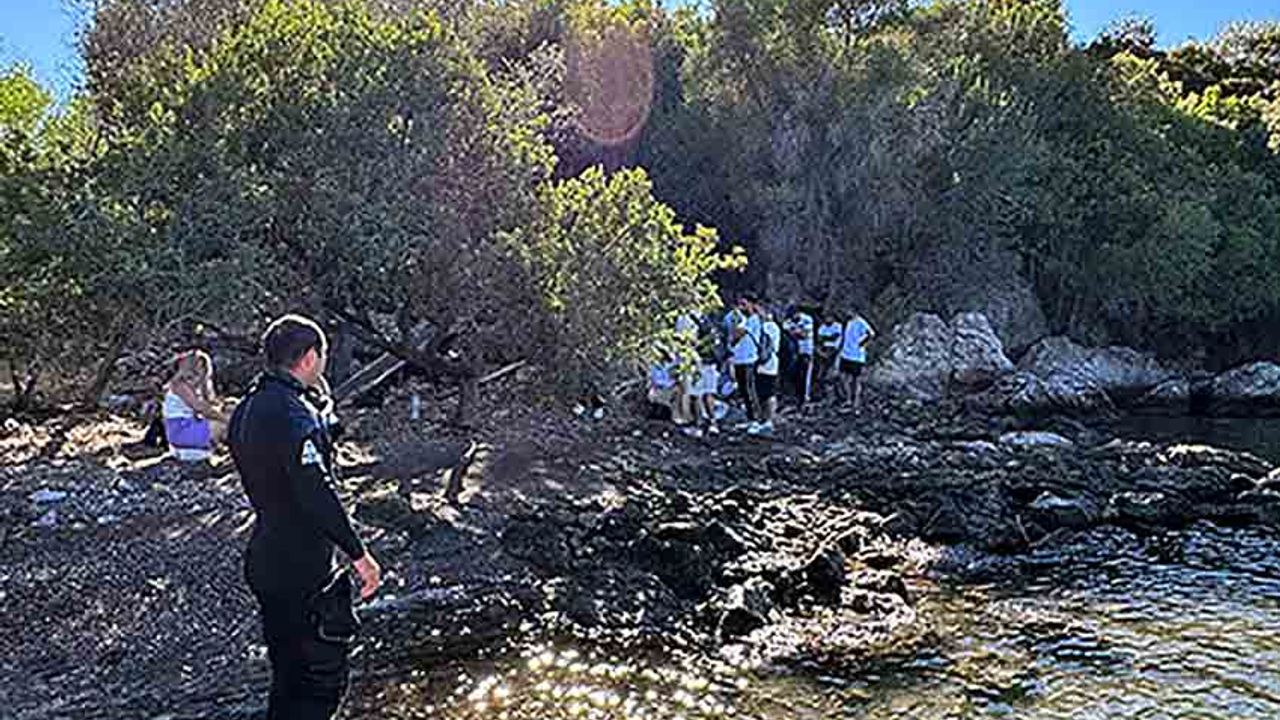 Marmaris ilçesinde Cennet Adası mevkiinde görevli Sahil Güvenlik Dalış Timi tarafından karadan ulaşımı olmayan bölgede bir grup düzensiz göçmenin olduğu tespit edilmesi üzerine görevlendirilen Sahil Güvenlik Botu tarafından kara üzerinde bulunan 16 düzensiz göçmen (beraberinde 2 çocuk) yakalandı.