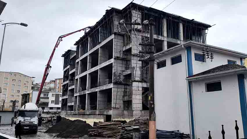 Zonguldak’ın Ereğli ilçesine bağlı Gülüç beldesinde yapımı süren Vesile Dikmen İlköğretim Okulu inşaatı tüm hızıyla devam ediyor.
