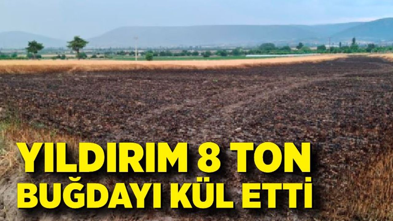 Denizli'de yıldırım düşmesi sonucu anızda başlayan yangının, ekili araziye sıçraması sonucu yaklaşık 8 ton buğday kül oldu. Hasada gün sayan yaşlı çiftçi, traktörüne bağladığı yaş dalları alevlerin üzerinden sürükleyerek yangını söndürdü.